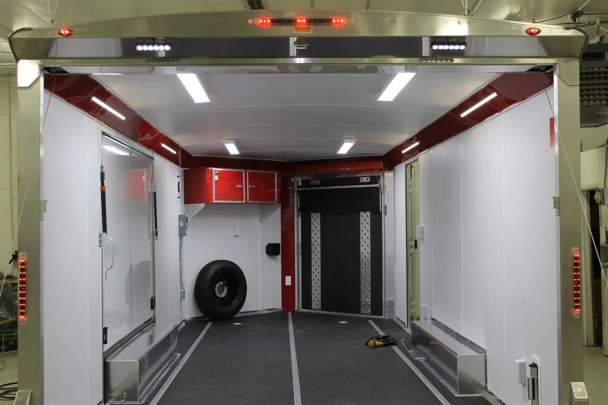 There are quite a bit of options here for interior and exterior. Loading lights, additional break lights, flood lights and cabinent lighting are all popular options. NEO uses only LED lights which burn efficiently and last a long time.