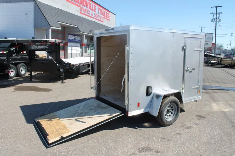 The smallest model available is single axle 4x6. This one is outfitted with a single rear door with a bar lock.